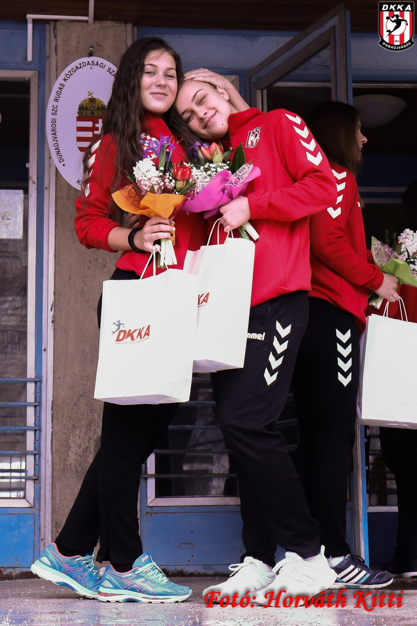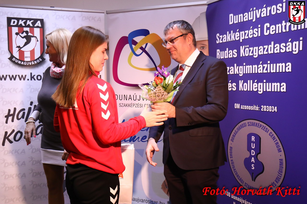 A köszöntők után Radulovics Bojana és Csapó Gábor átadta az ajándékokat a fiataloknak: idén Frányó Laura (11.c) jobbátlövő és irányító, Szabó Tekla (9.c) balszélső és irányító, Veres Barbara (10.c) jobbátlövő, Borbás Dzsenifer (11.c) jobbszélső, Takács Cecília (11.a) irányító, Koronczai Petra (9.c) irányító, Kovács Vivien (11.a) kapus érdemelte ki a Szakképzési Centrum, a Rudas iskola és a DKKA elismerését.