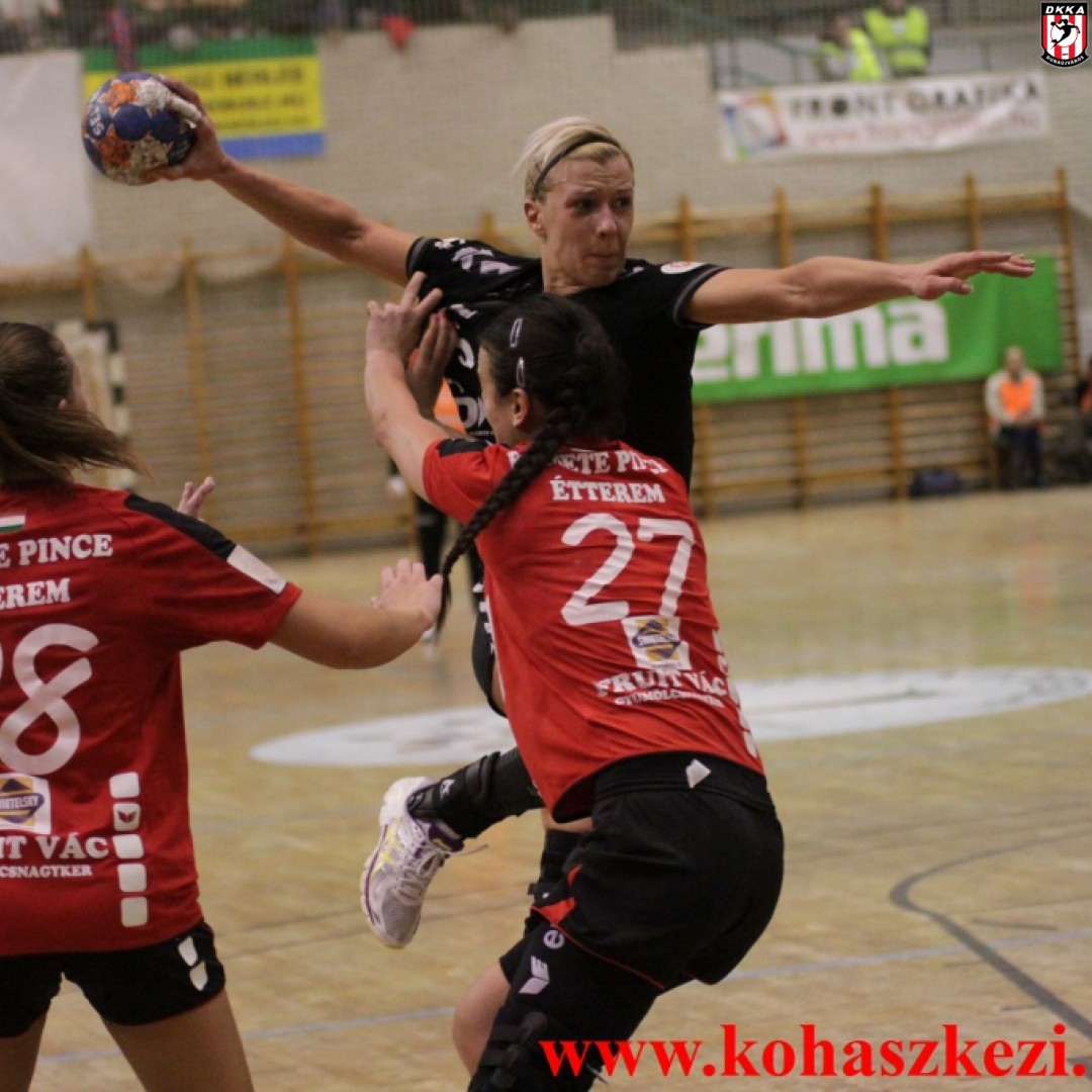 Nem is cáfolt rá erre az első hat-hét perc, hiszen hiába szerzett első támadásából vezetést a Kohász, a hazaiak gyorsan fordítottak, így hiába kapaszkodott a csapatunk, a házigazdák tartott egy-kétgólos előnyüket (5-4). A folytatás viszont egyáltalán nem úgy alakult, ahogy azt a mieink eltervezték, mert támadásban több hibát is elkövetett csapatunk, ráadásul a védekezés sem működött az elképzeltek szerint, így az egyre lelkesebb házigazdák fokozatosan növelték vezetésüket, s Mátéfi Eszternek 10-6-os hátránynál már időt kellett kérnie a 17. percben. Ez sem hozta meg azonban a kívánt eredményt, mert a hajrá is a váciak fölényét hozta: ellenfelünk 14-7-re lépett meg öt perccel a szünet előtt, így hiába hozta egálra az utolsó pár percet a Kohász, a vendéglátók vonulhattak fölényes, 16-9-es előnnyel a pihenőre.
