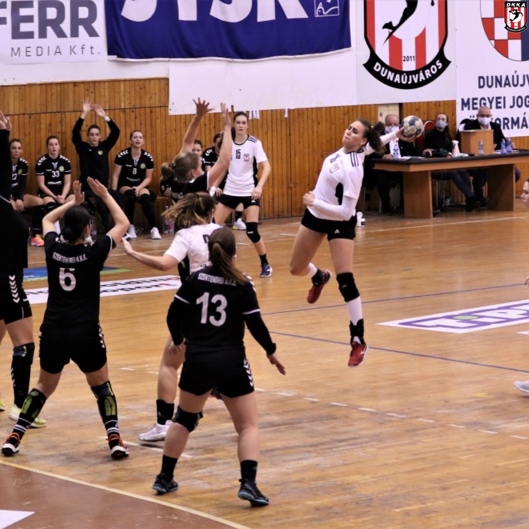 A második félidőt a pályán ritkán látható hármas emberhátrányban kezdte meg együttesünk, de ez az időszak sem hozta sokkal közelebb a csapatokat. Majd egy újabb kiváló periódus következett a DKKA számára, amikor is Fodor Neszta mellett Pál Eszter és Kovács Krisztina is szállította a gólokat. A második félidő közepe tájékán megjelent a fáradtság mindkét félnél, a csapatok egyre többet hibáztak a támadások befejezésénél. Egy védekezés során Sztanó Kincső bokája sérült meg, reméljük nem súlyosan. Fiataljaink végig tartani tudták a tempót a rutinos kézilabdázókból álló szentendrei csapat ellen, és végül tíz góllal, 32-22 arányban győzedelmeskedtek, mellyel megszerezték első pontjaikat a NB I/B-s bajnokság nyugati csoportjában. Jár a gratuláció az egész csapatnak!
