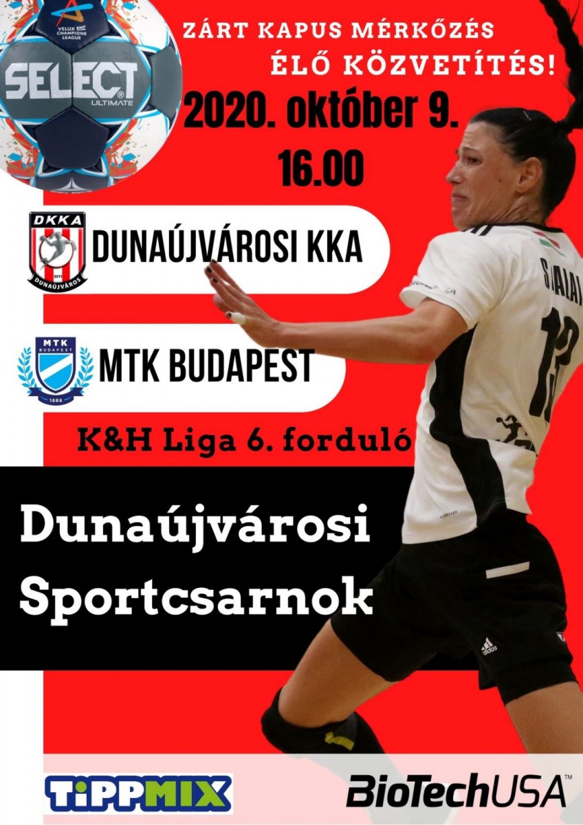 DKKA-MTK október 9. 16:00 - Dunaújváros Sportcsarnok (zárt kapus)
